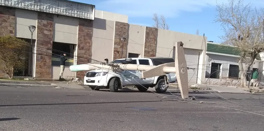 En la jornada de este lunes, un insólito hecho se dio en inmediaciones de Avenida Libertador y calle Galindez, en la localidad de Marquesado, departamento Rivadavia. Un poste de cemento perteneciente al tendido eléctrico se precipitó sobre una camioneta que circulaba por el lugar.