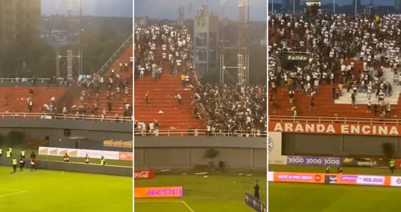 Una vez finalizado el duelo, que tuvo lugar en el estadio Antonio Aranda Encina, de Ciudad del Este, la parcialidad del Ciclón de Barrio Obrero forzó la zona de plateas y fue en busca de la hinchada del Decano, según indicaron los medios locales.