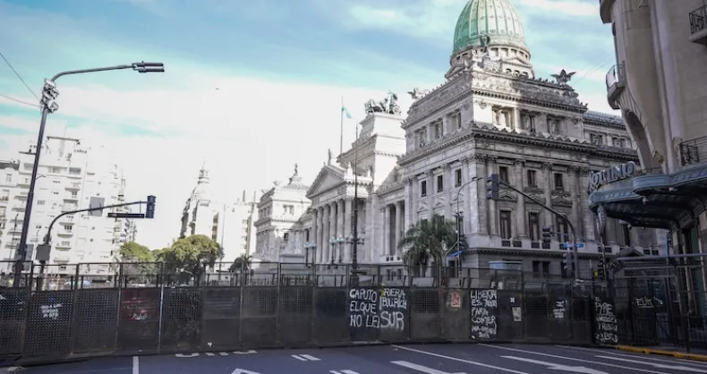 Organizaciones de jubilados, universitarios y trabajadores del Hospital Garrahan reclaman en el centro porteño. Las fuerzas federales armaron un vallado, mientras en la Cámara de Diputados debaten diferentes proyectos