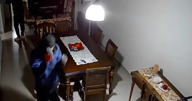 Uno de los ladrones aparece en el comedor, mira a la cámara de seguridad y dice: "Uhh, tiene cámara esta". Su cómplice, con total soltura le respondió: "Tranqui, tapate la jeta".