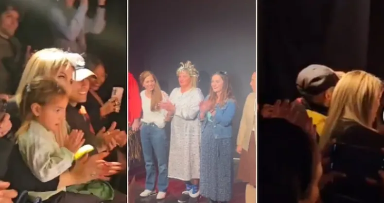 Al momento de dar por finalizada la historia, el elenco se presentó arriba de las tablas y saludó a la audiencia. Entre aplausos y ovaciones, la empresaria y la nena se destacaron al entregarle un ramo de flores a su abuela. Luego, subió al escenario de la mano de Nara, un gesto que no solo reflejó familiaridad, sino que rápidamente fue interpretado como una señal de unión renovada entre la empresaria y el músico.