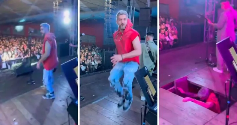 El video del accidente del líder de Dale Q’ Va en pleno show: se rompió el escenario y cayó al vacío
