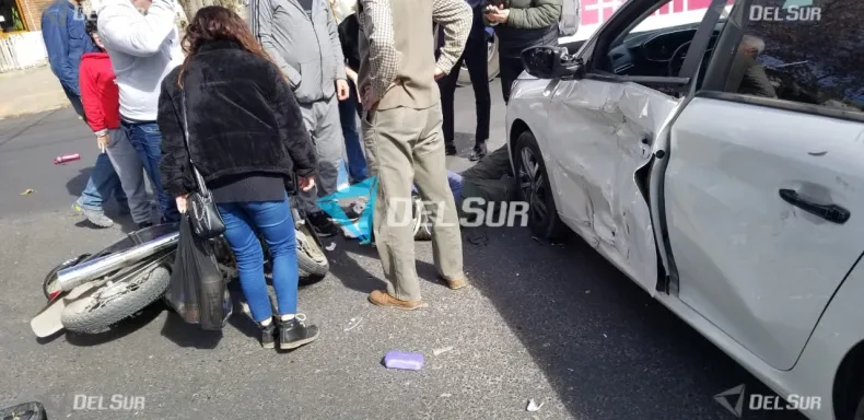 Este martes se registró un fuerte choque en el departamento Capital que involucró a una moto y un auto en la intersección de Santiago del Estero y avenida Córdoba.