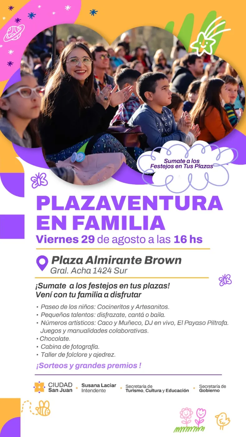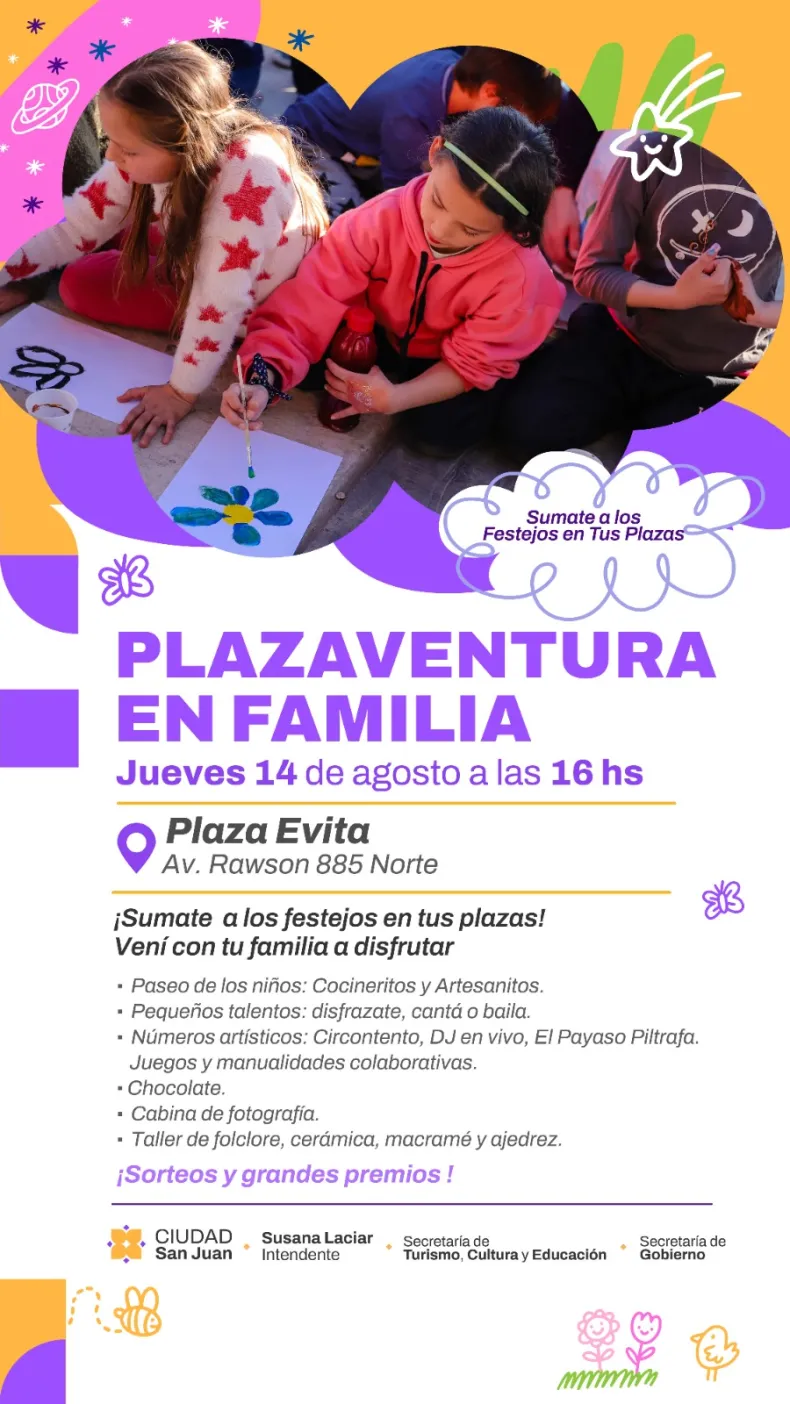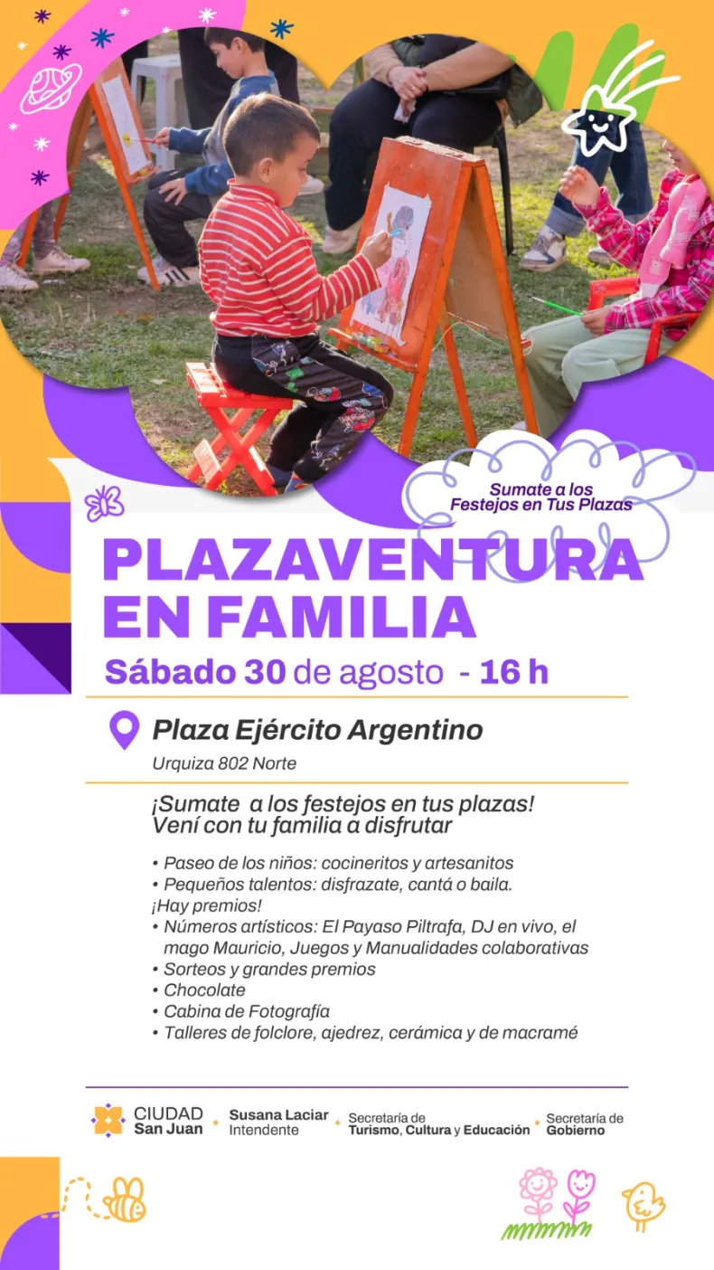 La Municipalidad de la Ciudad de San Juan invita a todas las familias a celebrar con juegos, espectáculos y premios en las plazas de Capital.