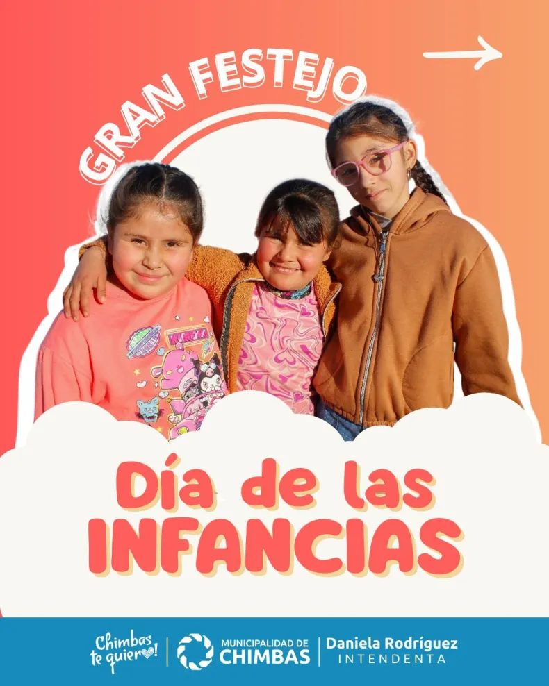 Como todos los años se realizará el gran festejo del Día del Niño, organizado por la Municipalidad de Chimbas en todo el departamento; con dos eventos, en el este y oeste, cerrando con un gran chocolate y show en el Parque de Chimbas. Con entrada libre y gratuita, los chimberos y chimberas podrán disfrutar de espectáculos pensados para los chicos y la familia, interactuando con juegos de kermes, juegos didácticos, actividades deportivas, shows sobre escenarios y un exquisito chocolate para todos.