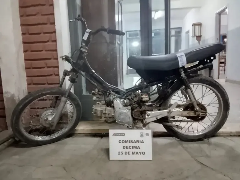 Apareció una moto robada en 25 de Mayo: la Policía la encontró en un descampado