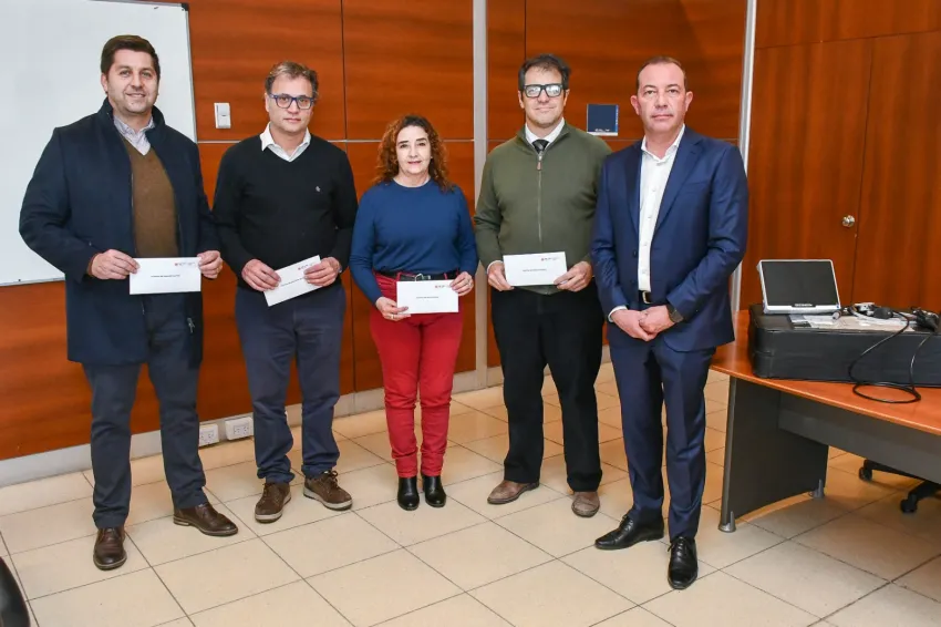 Durante el acto de entrega, realizado en la sede del Ministerio de Salud, acompañaron al ministro los secretarios Alejandro Navarta (Técnico), Gastón Jofré (Planeamiento y Control de Gestión), Pablo Arroyo (Medicina Preventiva) y Gabriel Porra (Administrativo).
