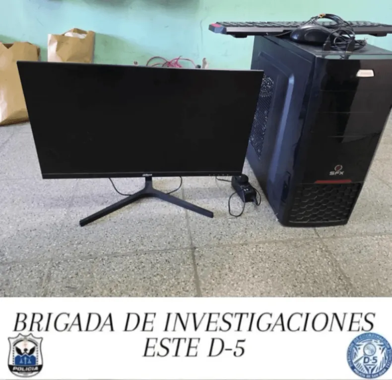 El equipo recuperado no era cualquier cosa: se trataba de una computadora de escritorio con un gabinete marca SFX de color negro, un monitor de 22 pulgadas marca ALHUA, y para completar, teclado y mouse de la misma marca. ¡Un verdadero combo tecnológico que había sido víctima de un robo!