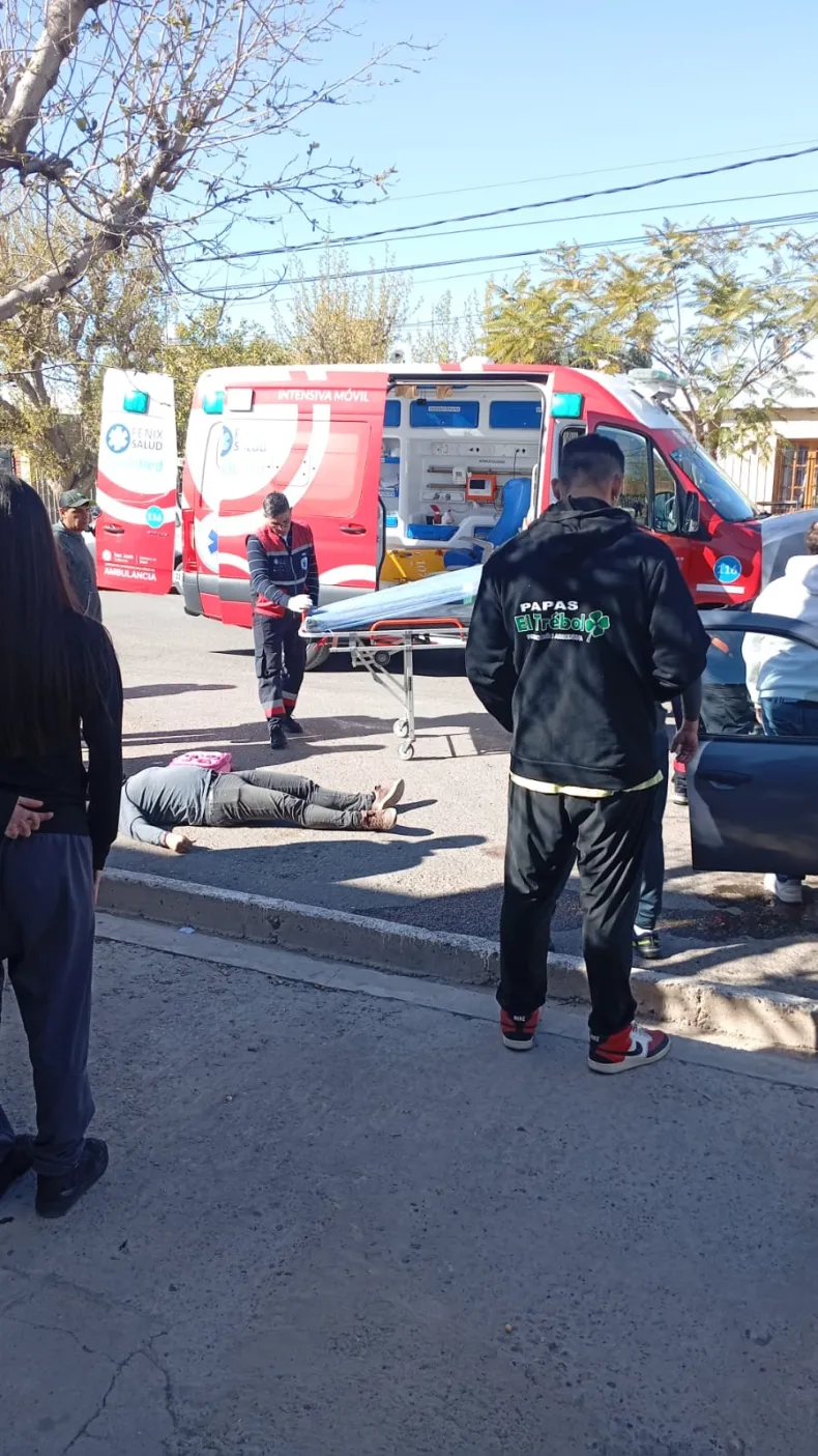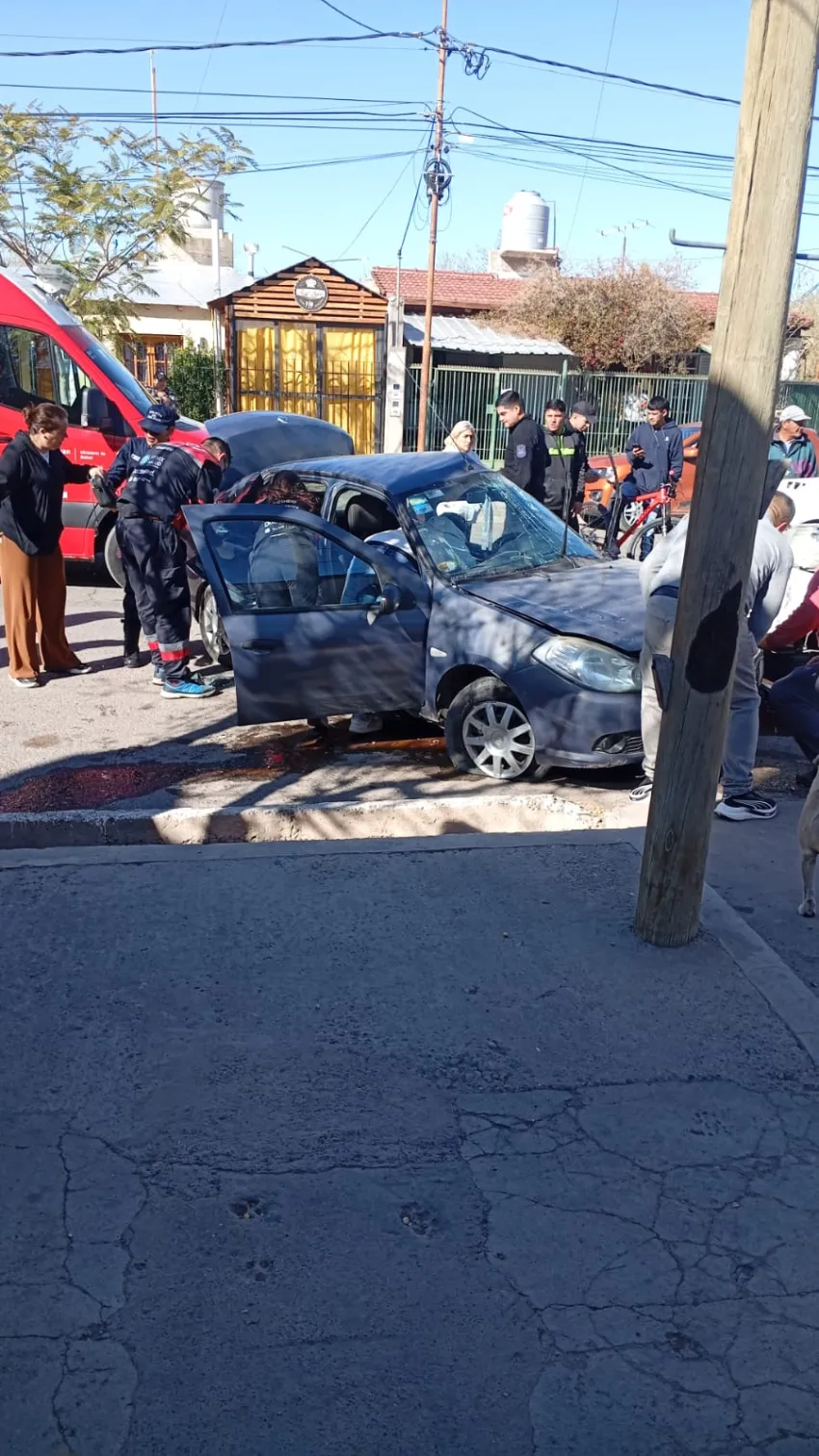El accidente ocurrió en calles Chacabuco y Salvador María del Carril, cerca de la feria departamental. Policía y personal del 107 asisten a una mujer embarazada que quedó atrapada en el rodado.