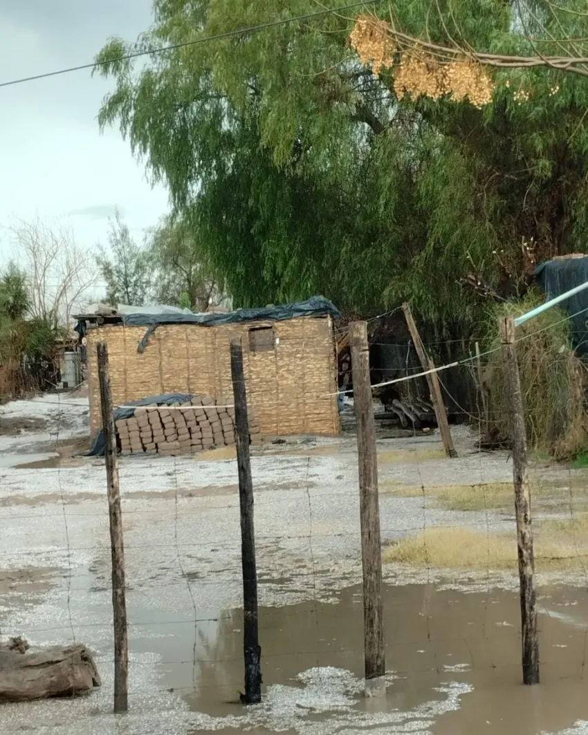 Una joven madre y sus dos hijos menores recibieron asistencia de la Policía y Defensa Civil tras las intensas lluvias que afectaron la zona. Energía San Juan cortó el suministro eléctrico por precaución.