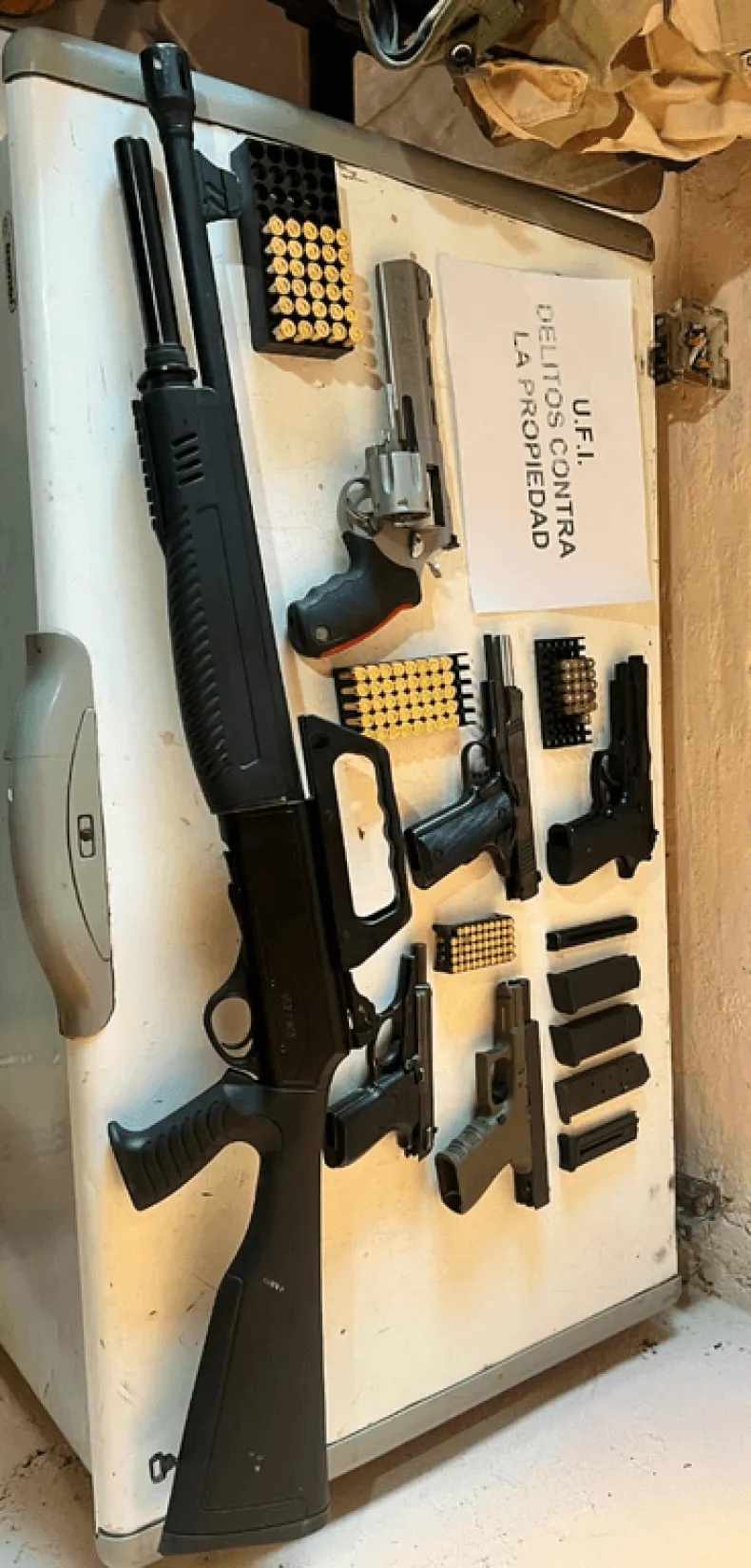 Entre las joyitas que se llevaron, se destacan una pistola Bersa calibre 22, una Glock 9 mm, una semiautomática calibre 45 mm y un revólver calibre 44 Magnum. Pero eso no es todo, también apareció una escopeta calibre 12 marca Escort y una pistola CO2 4,5 mm que, aunque no es de fuego real, no deja de ser un artefacto peligroso.