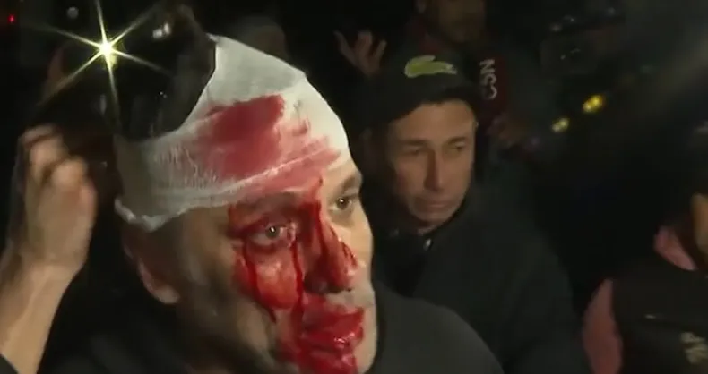 Cristian Mercatante, aquel que conocimos en El Bar, la pasó re mal y ahora, laburando de cronista, ligó un botellazo en el cierre de campaña de Milei en Moreno.
