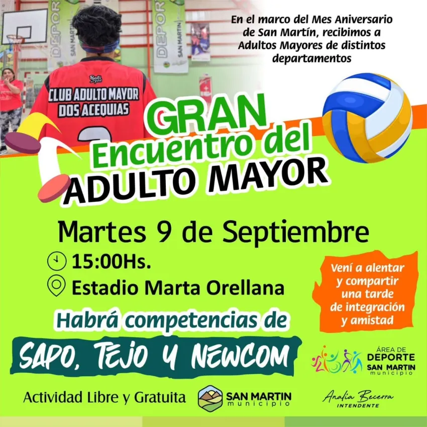 El evento, de carácter libre y gratuito, es organizado por el Área de Deportes de la Municipalidad de San Martín, con el objetivo de fortalecer los vínculos comunitarios, promover la actividad física y reconocer el rol activo de los adultos mayores en la vida social del departamento.