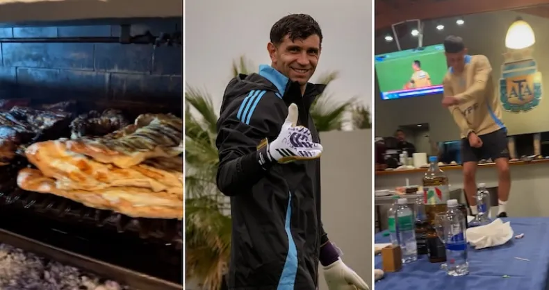 El Dibu nos mostró la intimidad del plantel: la parrilla a full con el chef Iacovone y el baile de bienvenida del juvenil Castelau. ¡Así se vive la Scaloneta!