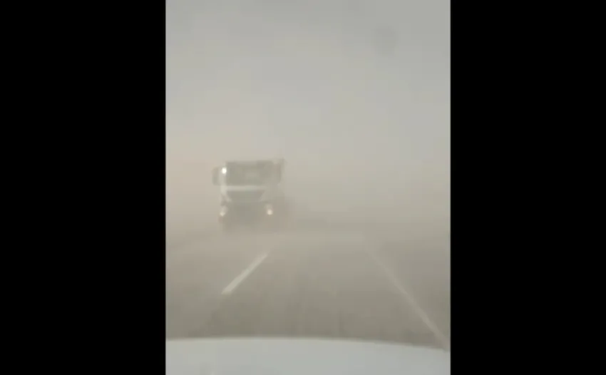En un video registrado durante la mañana se observa la polvareda que cubre la Ruta Nacional 40 a la altura de Matagusanos, en el norte de la provincia. La visibilidad es mínima y, ante esta situación, Vialidad Nacional solicitó circular con luces bajas, reducir la velocidad, evitar maniobras bruscas y respetar las indicaciones del personal en la zona.