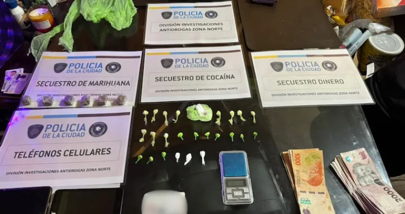 Con todas las pruebas juntitas, la fiscal pidió los allanamientos al Juzgado 23. La Policía de la Ciudad cayó en las casas y encontró de todo: casi 25 gramos de cocaína ya armados en 43 paquetitos, una piedra de la misma sustancia, marihuana, pastillas, celulares y plata en efectivo. Todo listo para la venta.
