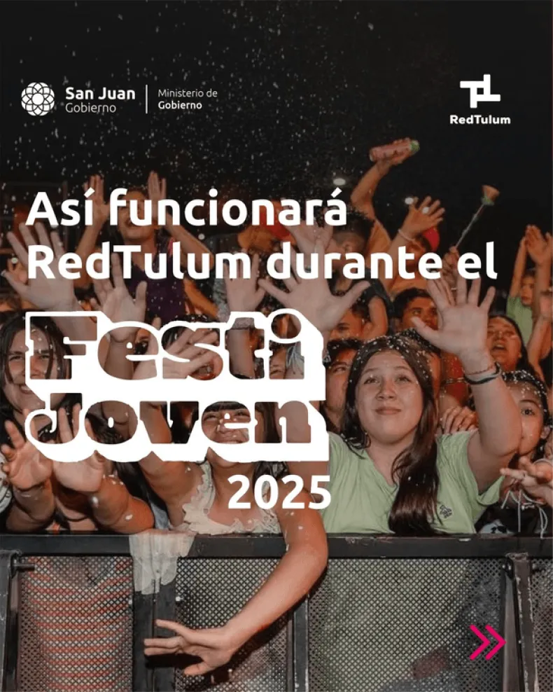 El Ministerio de Gobierno, a través de la Dirección de Coordinación de RedTulum, ha decidido hacer algunos ajustes en los recorridos de los colectivos para facilitar que todos los sanjuaninos lleguen a tiempo al FestiJoven 2025, que se celebrará en el Parque de Mayo el próximo 21 de septiembre desde las 11 horas.
