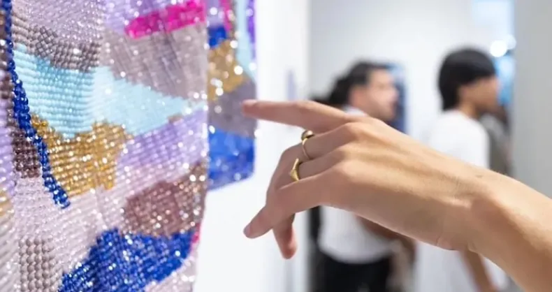 Su arte es una mezcla explosiva: usa el telar andino, una técnica ancestral, y la combina con materiales que no te esperás, como el cristal de roca y hasta lijas. ¿El hilo conductor? El brillo. "Mi abuela siempre contaba que de chiquito me fascinaban las fiestas porque ella se ponía un vestido y un collar que brillaban", contó Federico, y ese destello, esa memoria, se ve en cada obra.