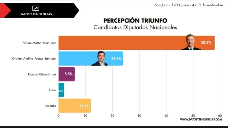 Pero eso no es todo, porque la encuesta también revela que un contundente 58,2% de los sanjuaninos creen que Fabián Martín se llevará la victoria, mientras que solo un 23,9% apuesta por Andino. ¡Una diferencia que no se puede pasar por alto!