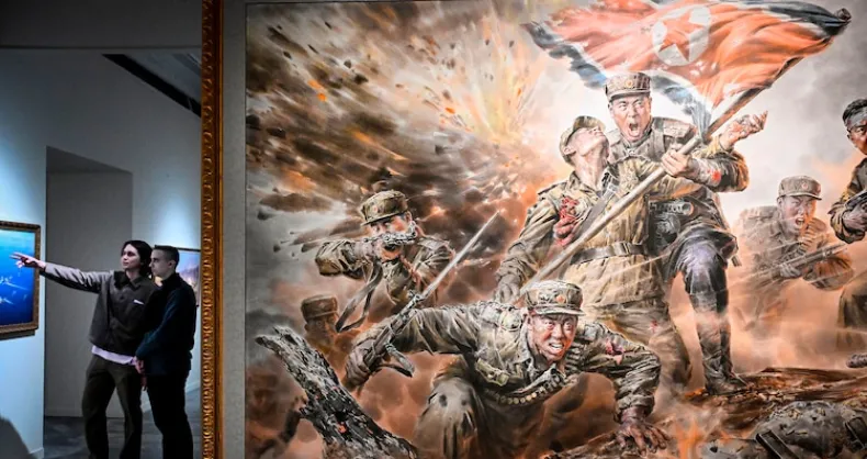 Unidos por la guerra: arte que celebra la alianza entre Rusia y Corea del Norte en una muestra en Moscú