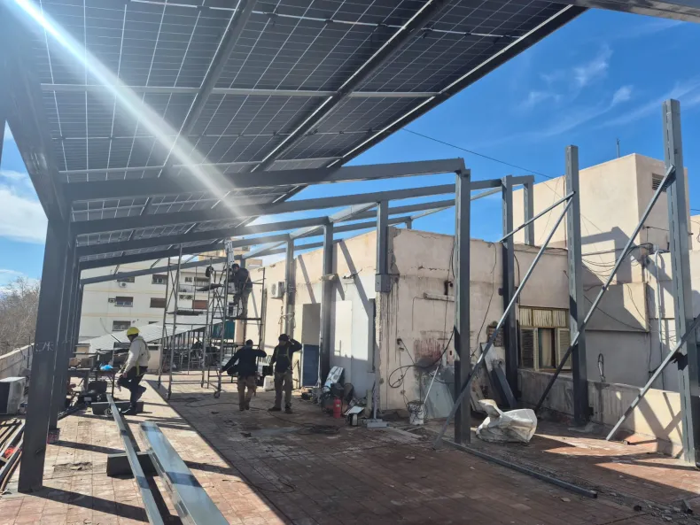 Cristian Rosas, el responsable técnico de la empresa adjudicataria, Electrónica Centro SRL, comentó que la instalación fue un verdadero desafío debido a la estructura del edificio. "Estuvimos conectando los últimos paneles solares de la segunda etapa, que fue la más difícil porque abarca un depósito de 180 metros cuadrados completamente cubiertos con paneles", dijo con orgullo.