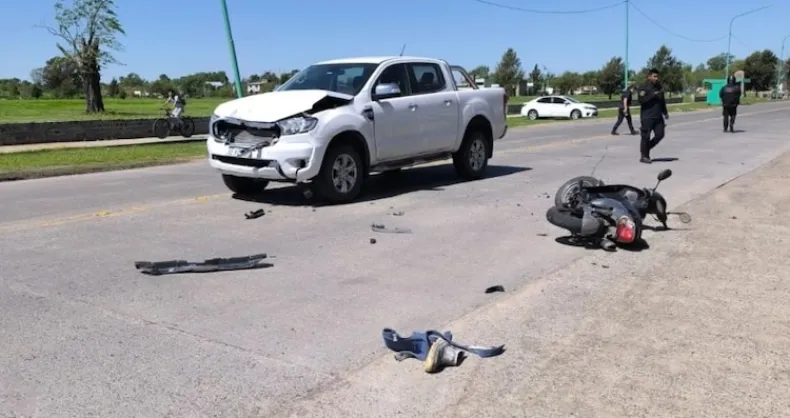 El siniestro ocurrió el martes a la tarde en Bossinga, entre Zabala y Camino Alternativo. Las cámaras de seguridad del municipio captaron el momento exacto: la moto intentó doblar y una camioneta, que venía detrás, no pudo esquivarla y la embistió de lleno.