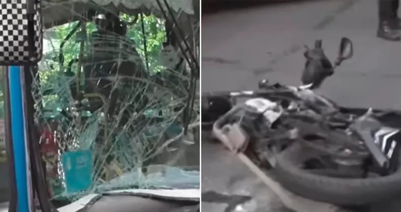 ¡Manso quilombo en el Centro! Colectivo y moto chocaron feo: siete heridos y la calle cortada