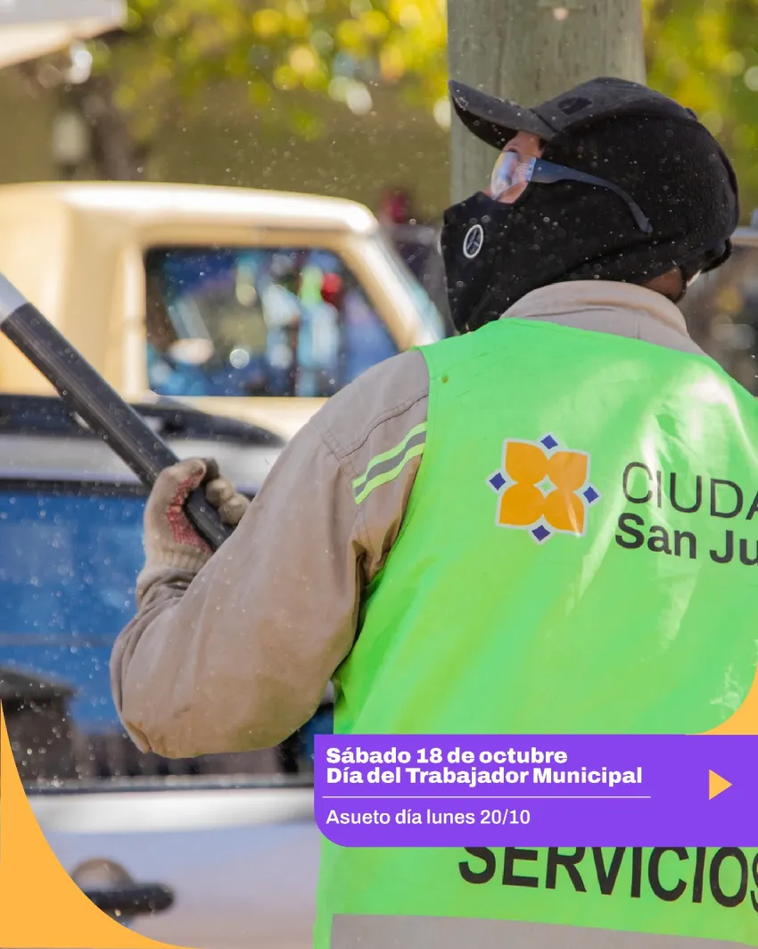 Con motivo de celebrarse el Día del Empleado Municipal, la Municipalidad de la Ciudad de San Juan otorgará asueto administrativo el lunes 20 de octubre, en reconocimiento al compromiso y la labor diaria de quienes forman parte de la institución.