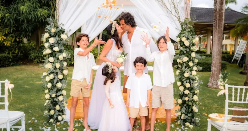 La diseñadora y el modelo no se guardaron nada y celebraron su amor en República Dominicana, en una ceremonia íntima con sus hijos. ¡Un día a pura emoción!