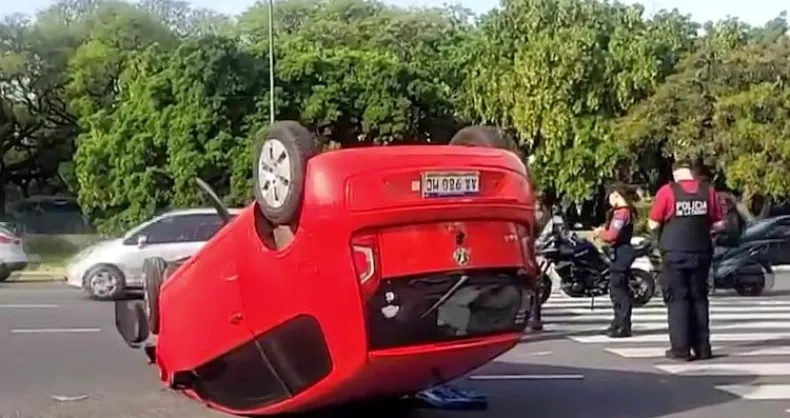 Un Volkswagen Up se dio vuelta tras un choque en Figueroa Alcorta. La conductora, de 48 años, fue trasladada al Hospital Fernández con varios golpes.
