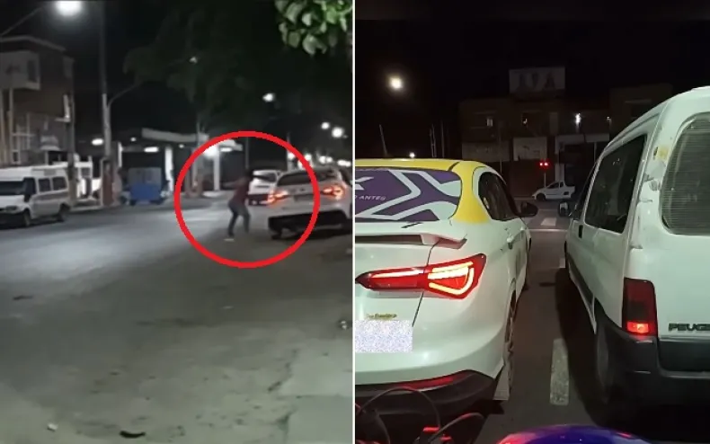Según el video que el motovloger compartió, el remisero, visiblemente alterado, se bajó de su vehículo y se puso a desafiar al conductor del utilitario a un enfrentamiento. Al ver que su provocación no obtenía respuesta y que el otro prefería seguir su camino, tomó una decisión drástica: le arrojó una piedra.