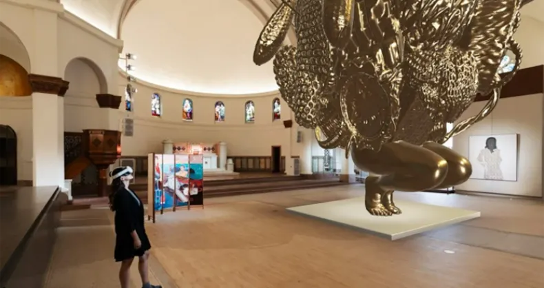 El artista Nick Cave te invita a un viaje alucinante: con gafas de realidad virtual, podés ver una escultura gigante que flota como si nada, mezclando arte y tecnología en Detroit.