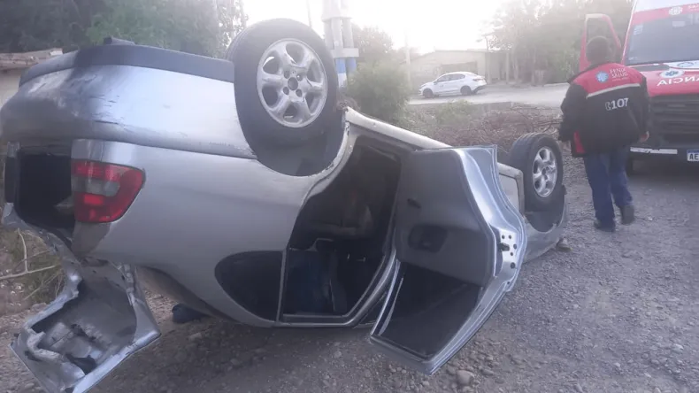 Auto da vuelta campana en Pocito