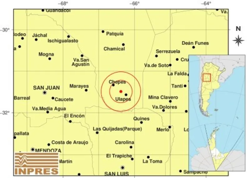 A las 5:42 de la mañana, un sismo de magnitud 4,7 se hizo presente en la provincia de La Rioja, según el informe del Instituto Nacional de Prevención Sísmica (INPRES). El epicentro del movimiento se localizó a 17 kilómetros al noroeste de Ulapes y a 25 kilómetros al sureste de Chepes, a una profundidad de 146 kilómetros.