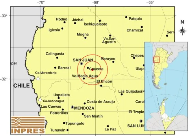 El epicentro estuvo ubicado a 44 kilómetros al sudeste de la ciudad de San Juan, a 17 kilómetros al este de Caucete y a 146 kilómetros al noreste de Mendoza, con una profundidad de 95 kilómetros. Por eso, el movimientito fue suavecito y de baja intensidad, y sólo lo captaron algunos vecinos de las zonas cercanas al epicentro.