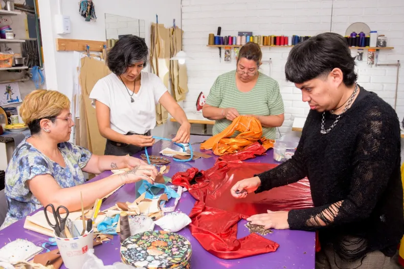 En este proceso creativo, cada uno de los miembros del taller tiene una característica. "Lucas es diseñador de indumentaria y se enfoca en moldes y diseño.