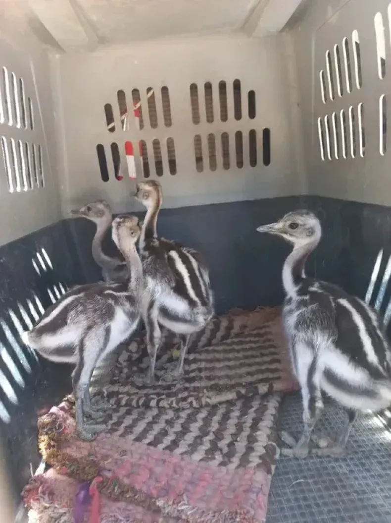 Cuatro suris autóctonos fueron rescatados de un gallinero en el distrito Angualasto tras un operativo conjunto entre la Secretaría de Ambiente y Gendarmería Nacional.