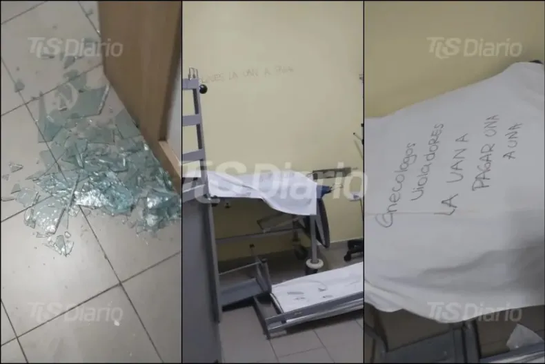 La paciente no se guardó nada y se le fue encima al personal médico. El consultorio ginecológico quedó convertido en un caos: vidrios hechos pedazos volaron por todos lados, las paredes quedaron rayadas a marcador y el mobiliario sufrió destrozos importantes. Hasta un monitor y una silla terminaron en el piso, y la puerta del consultorio mostró un vidrio rajado producto del furioso ataque, detallaron allegados al caso.