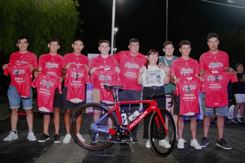 La intendenta Daniela Rodríguez encabezó la presentación de la indumentaria oficial para el equipo que empezó la temporada de ruta 2025-26 en Sarmiento, en la doble Media Agua, los primeros días de noviembre donde se obtuvo el tercer lugar.