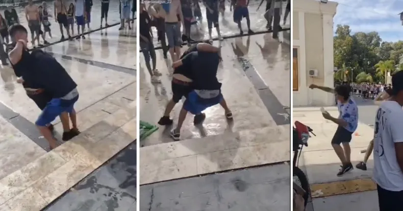 Con camisetas personalizadas, banderas y todo lo que los identifica, los pibes hicieron una caravana que recorrió la Avenida Libertador y la Ignacio de la Roza hasta llegar a la plaza final. Pero ojo que no todo fue un carnaval: en TikTok estalló un video donde un grupo de chicos se agarró a piñas, lanzó piedras y tiró botellazos. Una escena que preocupó a muchos y que pone en jaque la tranquilidad de un evento que debería ser pura alegría.