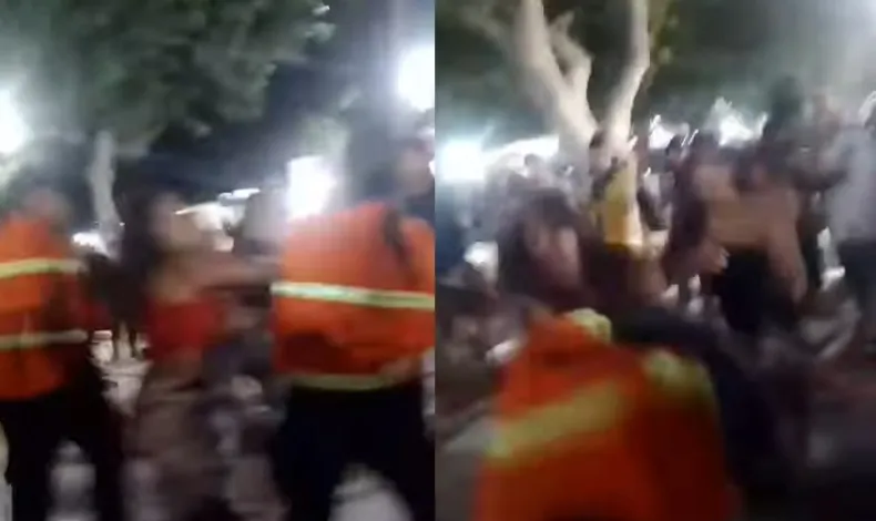 Escándalo en Caucete: pelea en plena plaza terminó con una policía a las piñas y el video explotó en las redes