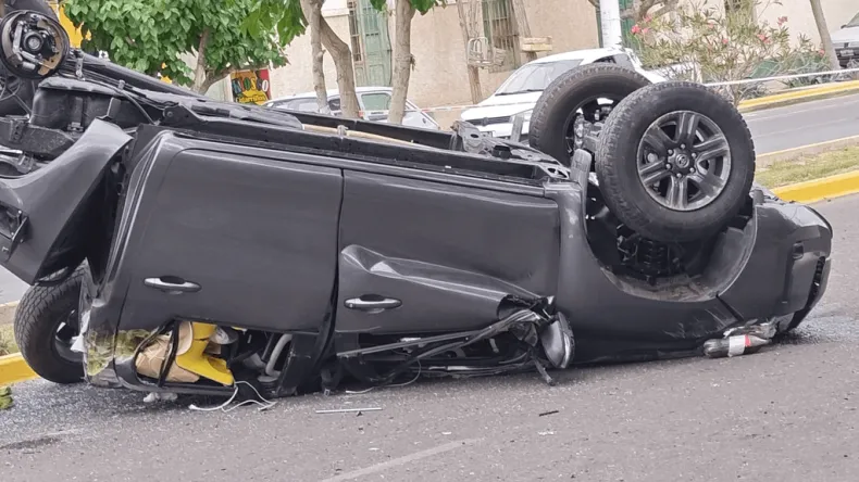 Una Toyota se dio vuelta como un trompo justo frente a una panadería re conocida de Marquesado. Resulta que el conductor, por razones que todavía se están clarificando, perdió el dominio y terminó subiéndose al boulevard, haciendo que el vehículo quedara patas para arriba sobre la calzada.