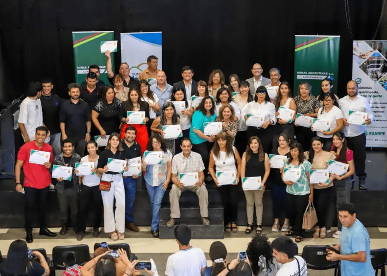El Municipio de Jáchal, de la mano con Minas Argentinas y Huarpe Seguridad, cerró con broche de oro su Curso de Habilidades Empresariales, entregando certificados a 50 jachalleros que resistieron y le pusieron garra durante todo el año. El acto reunió a figuras clave como el intendente Dr. Matías Espejo, el gerente de Comunicaciones de Minas Argentinas, Marcelo Agulles; el representante de Huarpe Seguridad, Eduardo Ara, y la profesora que acompañó a los alumnos, Cinthia Gómez.