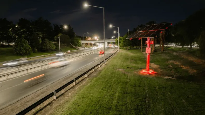 Los monopostes solares de la avenida de Circunvalación se iluminaron de rojo, sumándose a la campaña de concientización sobre el VIH en San Juan.