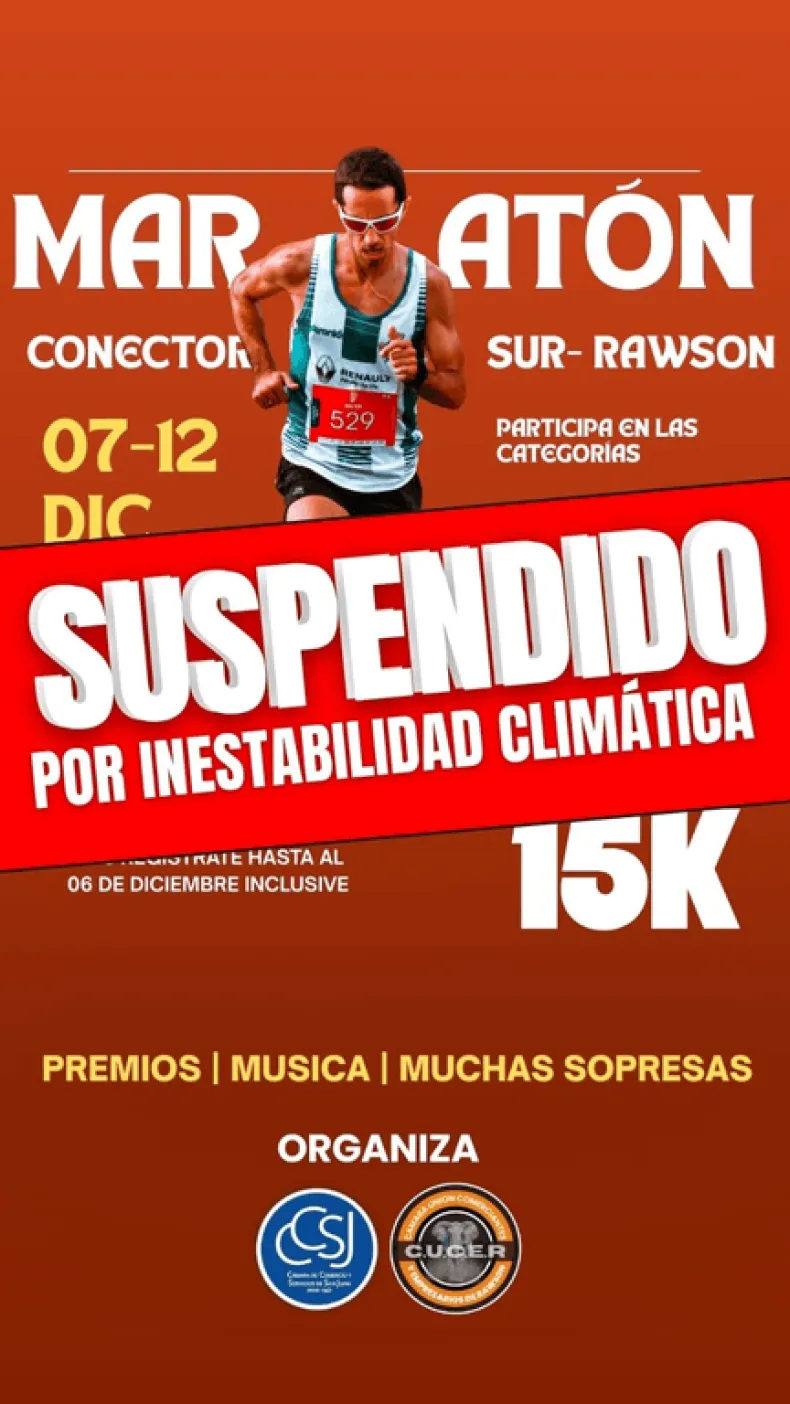 La comuna de Rawson deberá esperar un poco más para vivir la primera edición de la Maratón "Conector Sur", un evento deportivo que había generado gran expectativa en la comunidad local. La competencia, organizada por la Cámara de Comercios y Servicios de San Juan (CCSJ) junto a su Filial Rawson, estaba programada para este domingo 7 de diciembre a las 19 horas, pero finalmente será reprogramada para el año entrante debido a la inestabilidad climática pronosticada para el fin de semana.