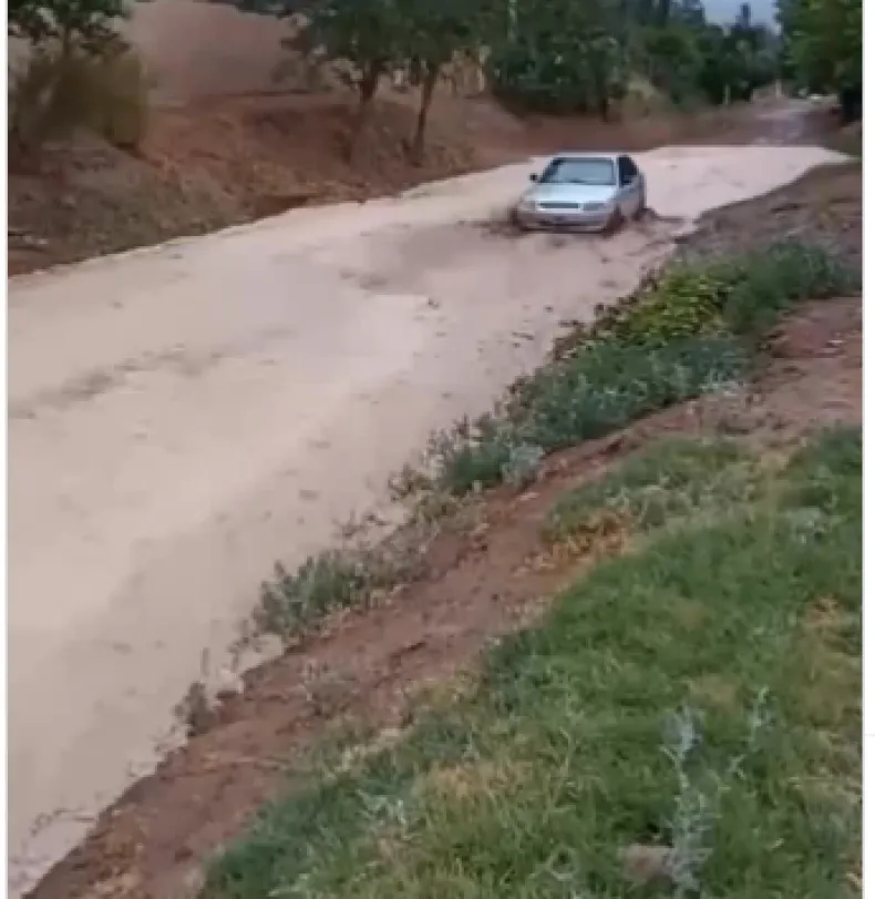 ¡Chaparrón peligroso en Barreal! Una creciente se llevó el auto de una familia