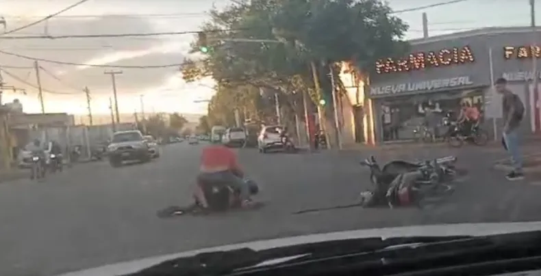 En un video que arrasó en las redes en las últimas horas, se puede ver a dos hombres de Pocito trenzados en una pelea sin filtro, justo en mitad de la calle, mientras los transeúntes, otros motociclistas y los autos detenidos en el semáforo no podían creer lo que sus ojos veían.