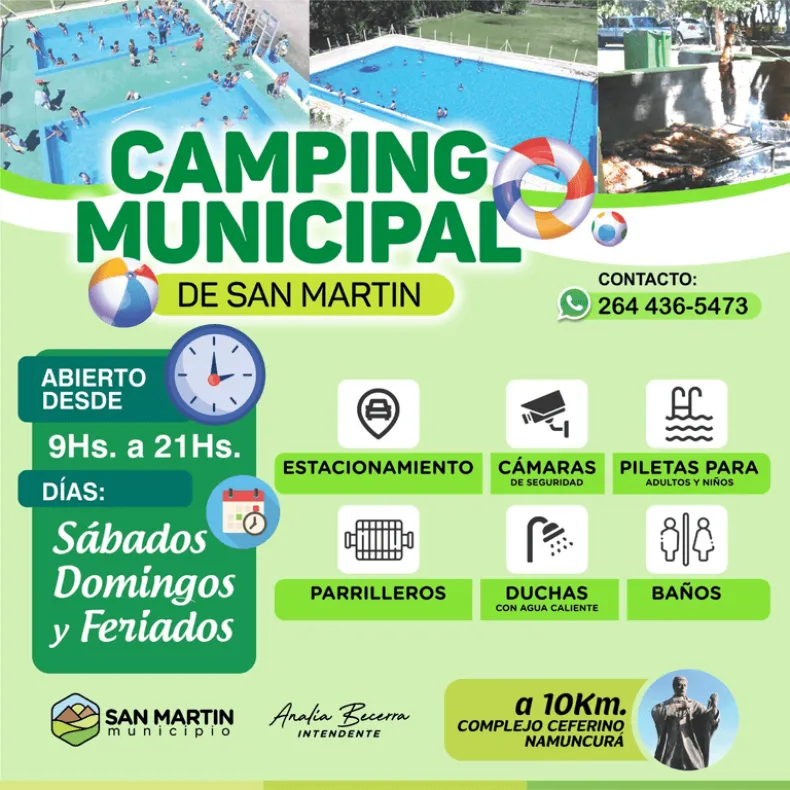 Si querés más info o tenés alguna consulta, llamá al 264 436-5473 y preparate para aprovechar el verano en pleno San Martín, disfrutando del aire libre y la buena onda que ofrece este espacio público que se renueva temporada tras temporada.