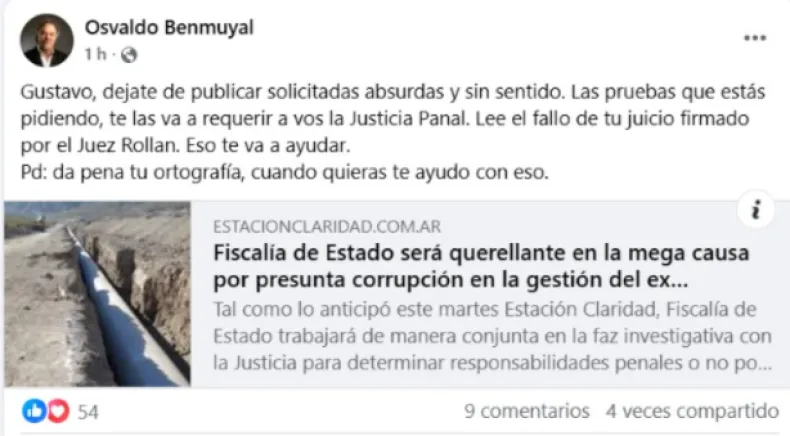 Este intercambio caliente surge después de que la Cámara de Apelaciones en lo Civil, Comercial y Minería de San Juan respaldara a Benmuyal, sosteniendo que sus declaraciones están protegidas bajo la libertad de expresión y que abordan un tema de interés público, sin incurrir en calumnias ni injurias.