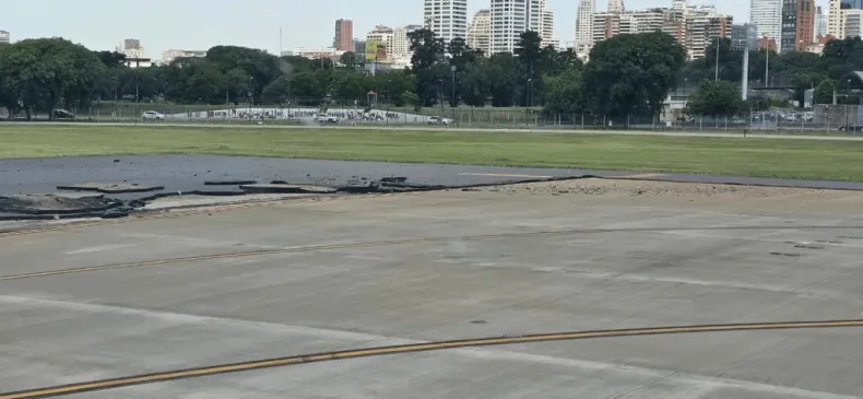 Un sector cercano a la pista sur del Aeroparque Jorge Newbery sufrió desprendimientos que obligaron a suspender operaciones durante tres horas, afectando a decenas de vuelos. El calor y las tormentas de días pasados agravaron la situación.